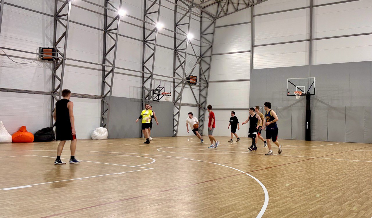 Высокие потолки - до 11 метров, отличный спортивный линолеум Tarket. Ширина зала более 18 метров, что добавляет комфорта к игре. Длинна 23 метра. Панорамная зона для зрителей, бесплатная парковка и 4 раздевалки с душевыми.